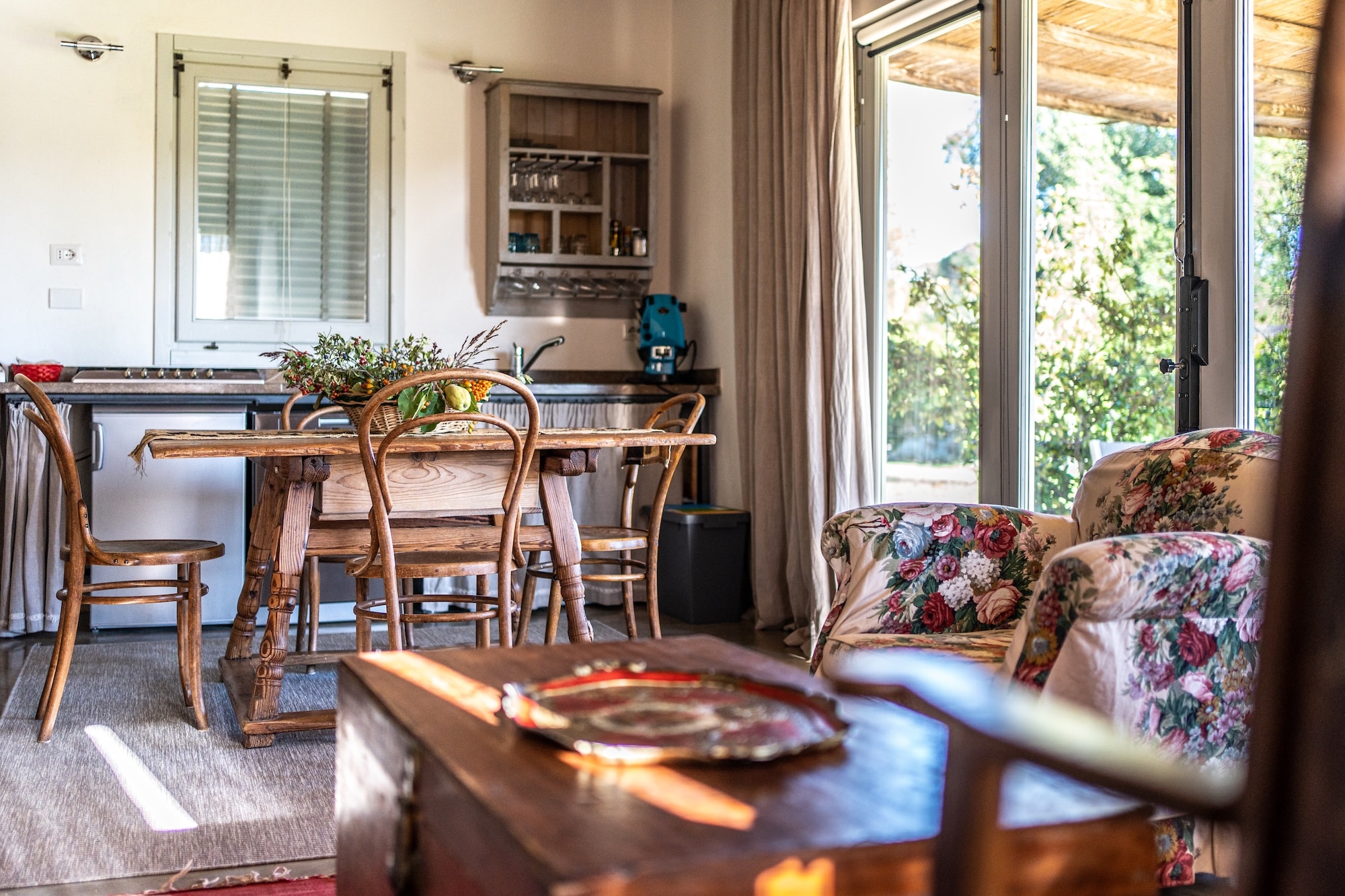 La Casetta è composta da una sala/cucina dotata di fornelli, forno elettrico, frigorifero, lavastoviglie e stoviglie. Da una spaziosa camera matrimoniale e da un bagno con box doccia. L’appartamento dispone di riscaldamento autonomo e condizionamento, tutte le luci nel rispetto dell’ambiente sono a basso consumo. Posta al piano terra ha due patii privati fronte/retro ad uso esclusivo degli ospiti della Casetta.